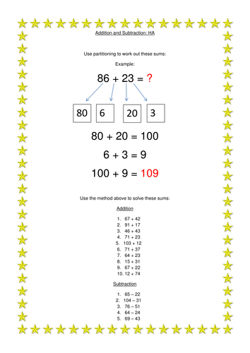 Addition and subtraction using partitioning. Pdf | 3 pages | years: